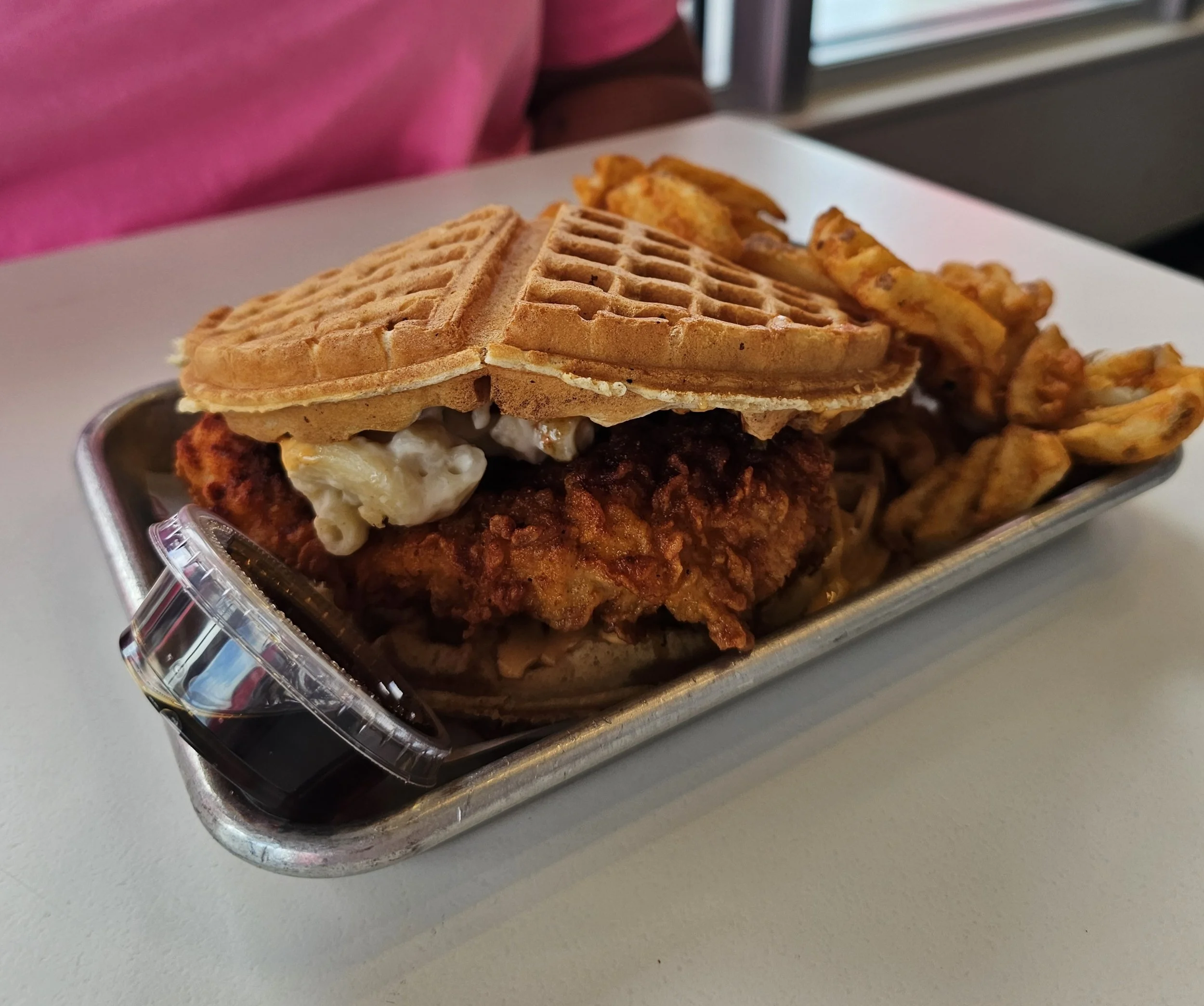 The MacDaddy sandwich on a waffle